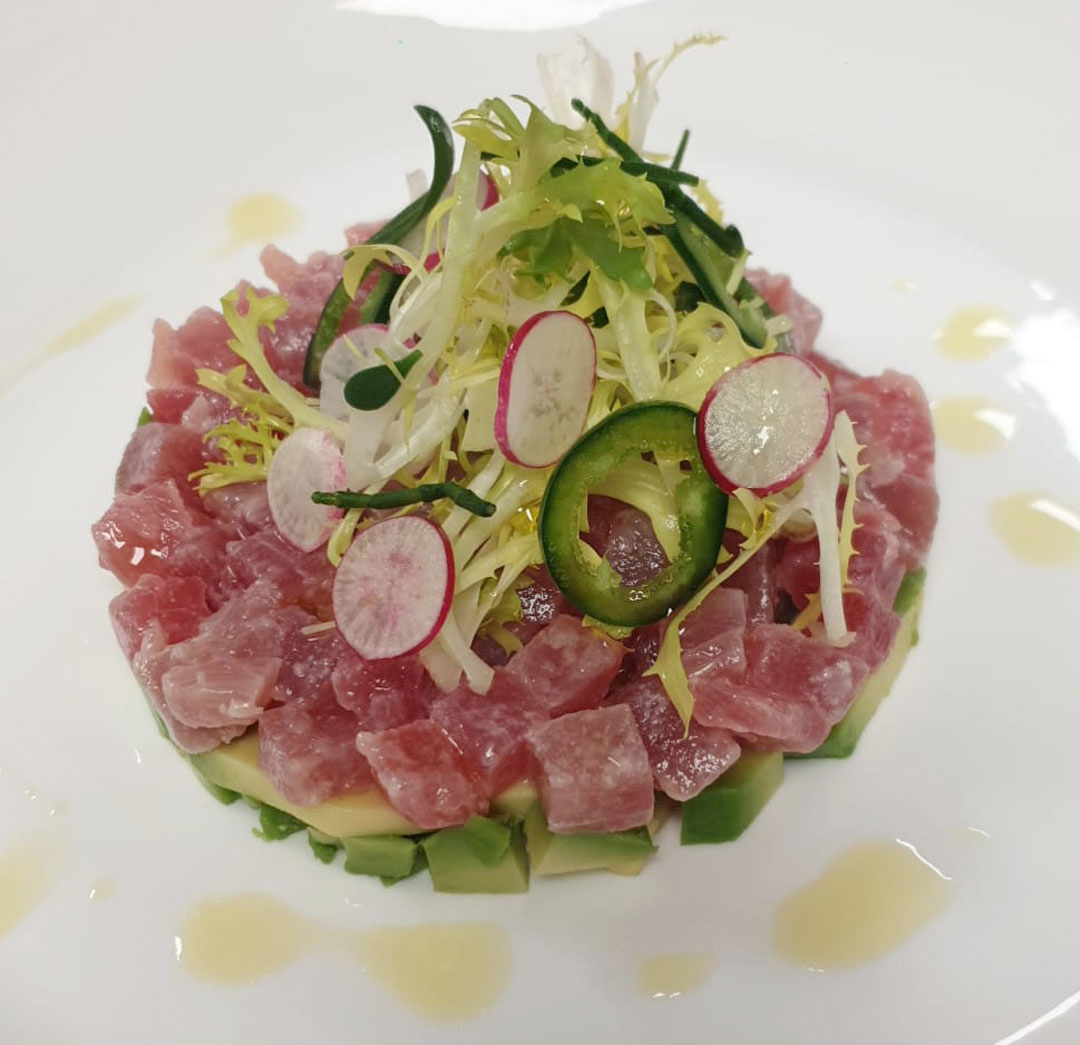 Tuna Tartar with avocado, salad frisée, jalapeños, radish and sea purslane
